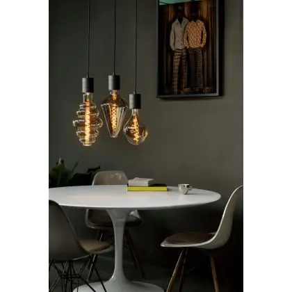 Beschrijving Calex Retro Pendelarmatuur Cordset Rond Metaal Zwart |incl. kabel 2 Meter - Geschikt voor 3xE27