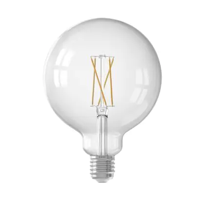 Ben je op zoek naar slimme E27 LED verlichting van topkwaliteit? Dan maak je met deze E27 Calex Smart LED Globe Lamp een uitstekende keuze! Deze Calex Smart lamp heeft de welbekende E27 schroeffitting en helder glas, waardoor je het LED Filament (kooldraad) goed zit! Qua vermogen verbruikt deze Smart verlichting slechts 7,5 Watt. Daardoor ga je fors besparen op je energiekosten, want deze slimme LED verlichting is de energiezuinige vervanger van conventionele E27 gloeilampen. Verder gaat deze Calex E27 LED verlichting 15.000 branduren mee en krijg je bij aankoop 2 jaar Lampdirect all-in garantie. Daarnaast draag je een steentje bij aan een schonere wereld, wanneer je kiest voor LED.
