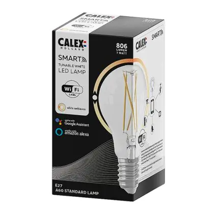 Je kunt ook meerdere Calex smart lampen koppelen aan onder meer een Google Home of Amazon Alexa apparaat. Hierdoor wordt het mogelijk om Calex verlichting met jouw eigen stemgeluid te bedienen. Door het geven van eenvoudige instructies als; ‘Hey Google, dim de lamp boven de tv’, heb je dit al binnen no-time geregeld! Tevens kun je deze peervormige E27 Calex Smart verlichting bedienen via een officiële Calex Smart afstandsbediening. Deze Calex lamp werkt ook op een wandschakelaar, maar niet op een dimmerschakelaar. Hou daar rekening mee. Ben je op zoek naar Smart verlichting met een andere fitting of in een andere vorm? Klik dan hier om ons volledige assortiment te bekijken!
