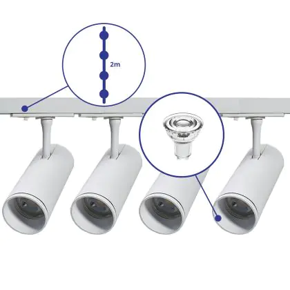 | Fabrikantnaam | Complete Straight 2-meter 1-Phase Track Set White incl. 4x Spot fixture + GU10 2700K 3W Dim – 2x 1 M | |