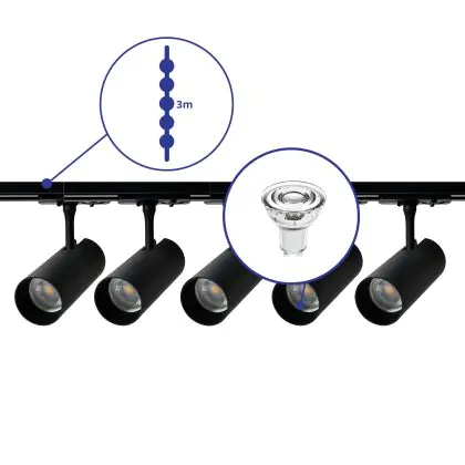 | Fabrikantnaam | Complete Straight 3-meter 1-Phase Track Set Black incl. 5x Spot fixture + GU10 2700K 3W Dim – 2x 1.5 | |