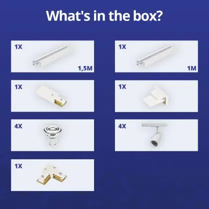 | Fabrikantnaam | Complete L shaped 1-Phase Track Set White incl. 4x Spot fixture + GU10 2700K 3W Dim - 1 x 1,5 meter | |