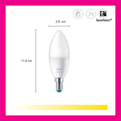 Beschrijving Duopak 2x WiZ Smart LED E14 Kaars Mat 5W 470lm | Beste Kleurweergave - Dimbaar - Vervangt 40W