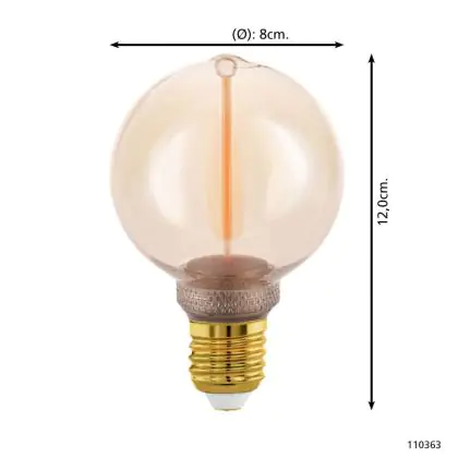 Beschrijving Eglo LED Globe E27 Filament Amber 2W 100lm - 818 Zeer Warm Wit | Dimbaar - Vervangt 15W
