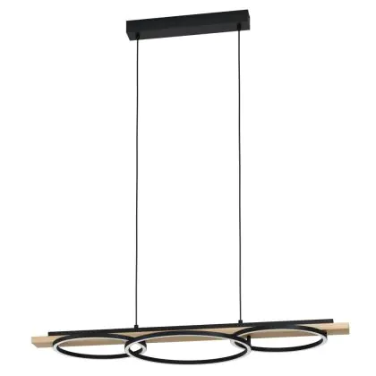 Beschrijving Eglo Pendelarmatuur Boyal Hout Zwart, Bruin 40.5W 3600lm - 830 Warm Wit | Dimbaar