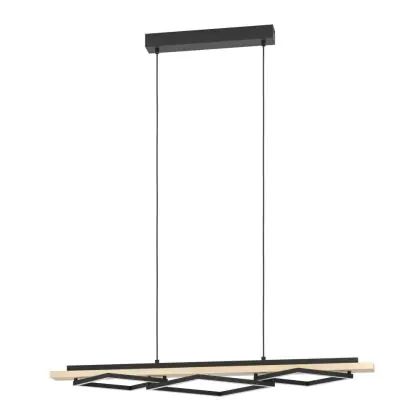 Eglo Pendelarmatuur Boyal Hout Zwart, Bruin 42W 3500lm - 830 Warm Wit | Dimbaar