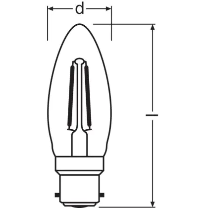 Beschrijving Ledvance Classic Performance LED Lamp B22d Kaars Filament Helder 2.5W 250lm - 827 Zeer Warm Wit | Vervangt 25W