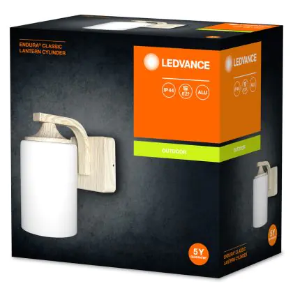 Met de Ledvance Endura Klassiek Cilinder Lantaarn Houtkleur ben je voorzien van een stijlvol opbouwarmatuur met een E27 fitting. Deze behuizing wordt exclusief lamp geleverd, maar dit is eenvoudig op te lossen! Bij Lampdirect heb je namelijk de keuze uit diverse A-merk LED E27 lampen, die je tegelijk kunt bestellen met dit wandarmatuur.