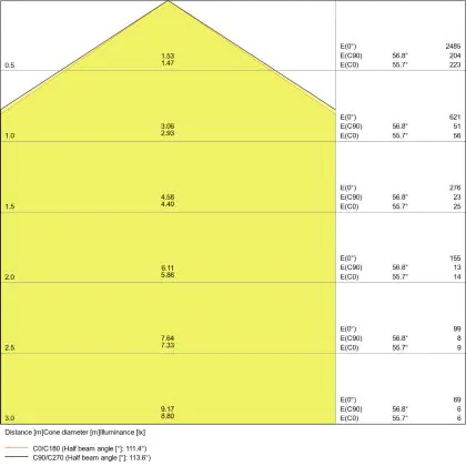 De gradenbundel geeft informatie over hoe breed het licht wordt uitgestraald. Dit zit tussen de 0 en 360 graden (D). Hoe kleiner de hoek, hoe specifieker de lichtbundel is. Over het algemeen is een smalle gradenbundel perfect voor sfeer- of accentverlichting, terwijl een brede gradenbundel ideaal is om grote oppervlaktes te verlichten.