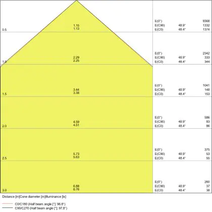 De gradenbundel geeft informatie over hoe breed het licht wordt uitgestraald. Dit zit tussen de 0 en 360 graden (D). Hoe kleiner de hoek, hoe specifieker de lichtbundel is. Over het algemeen is een smalle gradenbundel perfect voor sfeer- of accentverlichting, terwijl een brede gradenbundel ideaal is om grote oppervlaktes te verlichten.