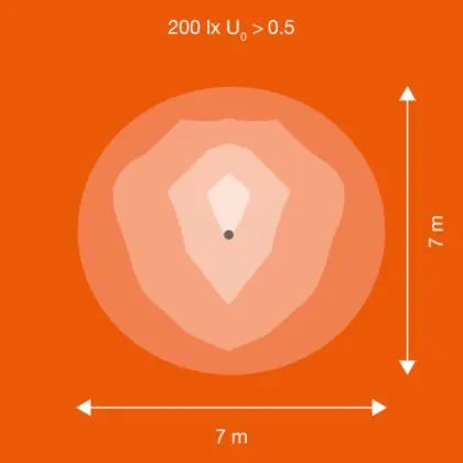 De gradenbundel geeft informatie over hoe breed het licht wordt uitgestraald. Dit zit tussen de 0 en 360 graden (D). Hoe kleiner de hoek, hoe specifieker de lichtbundel is. Over het algemeen is een smalle gradenbundel perfect voor sfeer- of accentverlichting, terwijl een brede gradenbundel ideaal is om grote oppervlaktes te verlichten.