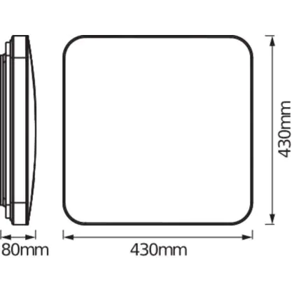 Beschrijving Ledvance LED Bulkhead Orbis Vierkant 430 Wit 50W 3700lm - 830 Warm Wit | 430x430mm - IP20 - Click - Bewegings- en lichtsensor