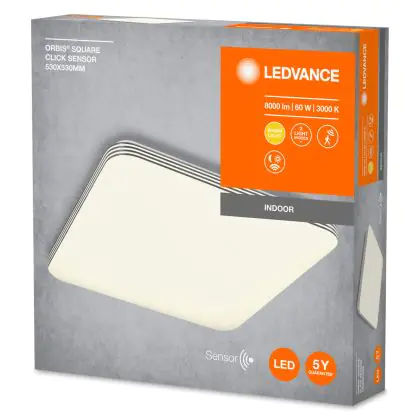 Beschrijving Ledvance LED Bulkhead Orbis Vierkant 530 Wit 60W 4450lm - 830 Warm Wit | 530x530mm - IP20 - Click - Bewegings- en lichtsensor