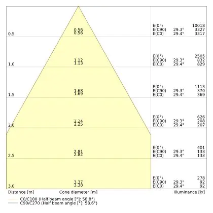 De gradenbundel geeft informatie over hoe breed het licht wordt uitgestraald. Dit zit tussen de 0 en 360 graden (D). Hoe kleiner de hoek, hoe specifieker de lichtbundel is. Over het algemeen is een smalle gradenbundel perfect voor sfeer- of accentverlichting, terwijl een brede gradenbundel ideaal is om grote oppervlaktes te verlichten.