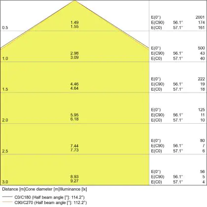De gradenbundel geeft informatie over hoe breed het licht wordt uitgestraald. Dit zit tussen de 0 en 360 graden (D). Hoe kleiner de hoek, hoe specifieker de lichtbundel is. Over het algemeen is een smalle gradenbundel perfect voor sfeer- of accentverlichting, terwijl een brede gradenbundel ideaal is om grote oppervlaktes te verlichten.