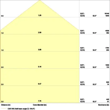 De gradenbundel geeft informatie over hoe breed het licht wordt uitgestraald. Dit zit tussen de 0 en 360 graden (D). Hoe kleiner de hoek, hoe specifieker de lichtbundel is. Over het algemeen is een smalle gradenbundel perfect voor sfeer- of accentverlichting, terwijl een brede gradenbundel ideaal is om grote oppervlaktes te verlichten.