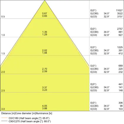 De lichtopbrengst (Lumen), geeft weer hoe krachtig het uitgestraalde licht is. Dit is belangrijk om te weten om de juiste sfeer te creëren. 0 tot 400 Lumen is bij uitstek geschikt voor accent- of sfeerverlichting. Een hoger aantal Lumen is, afhankelijk van de grootte van de ruimte, beter geschikt als ondersteunende- of basisverlichting. Heb je plafonds hoger dan 4 meter, dan is een lichtopbrengst van minimaal 8000lm aan te raden indien heldere verliching gewenst is (vb. in werkomgevingen).