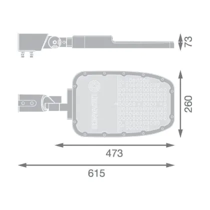 Beschrijving Ledvance LED Straatverlichting Area Large RV35ST Aluminium Grijs 90W 11700lm 155X69D - 730 Warm Wit | IP66 - Asymmetrisch