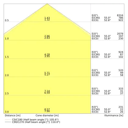 De lichtopbrengst (Lumen), geeft weer hoe krachtig het uitgestraalde licht is. Dit is belangrijk om te weten om de juiste sfeer te creëren. 0 tot 400 Lumen is bij uitstek geschikt voor accent- of sfeerverlichting. Een hoger aantal Lumen is, afhankelijk van de grootte van de ruimte, beter geschikt als ondersteunende- of basisverlichting. Heb je plafonds hoger dan 4 meter, dan is een lichtopbrengst van minimaal 8000lm aan te raden indien heldere verliching gewenst is (vb. in werkomgevingen).