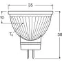 Beschrijving Ledvance Performance LED Spot Reflector GU4 MR11 4.2W 345lm 36D - 827 Zeer Warm Wit | Vervangt 35W