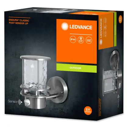 Ledvance Wandlamp Post Endura Classic E27 Staal | Up - Bewegings- en lichtsensor
