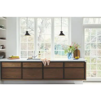 De kleur van het armatuur kan een grote rol spelen in het interieur van een ruimte. Zo kun je kiezen voor een neutraal wit design of juist voor een donkere kleur, zoals zwart of zilver, om de lichtbron op te laten vallen of er zelfs een decoratie op zich van te maken.                                             | Kleur Armatuur | Zwart |