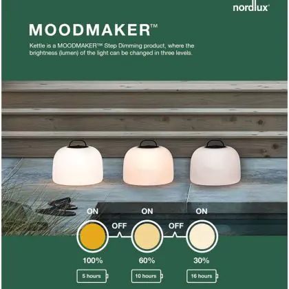 Beschrijving Nordlux Kettle Batterijverlichting Wit 4.8W 300lm - 827 Zeer Warm Wit | 3-Staps Dimbaar