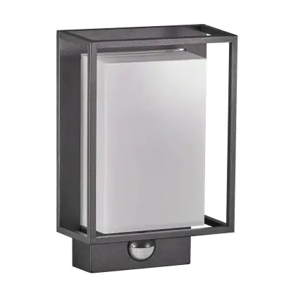 Nordlux Nestor Wandlamp Aluminium Zwart 8W 550lm - 827 Zeer Warm Wit | IP44 - Bewegings- en Lichtsensor