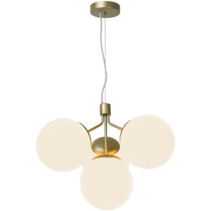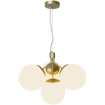 Deze Ivona hanglamp is messing met opaal glas, wat een glamoureuze en elegante uitstraling creëert. Het armatuur heeft 4 lampen met een E27 fitting (max. 28W). De hanglamp is dimbaar in combinatie met een dimbare lamp.