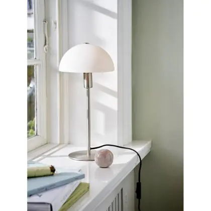Dankzij het minimalistisch en tijdloos Scandinavisch design past deze Nordlux Ellen tafellamp in vrijwel alle interieurs. De exclusieve, opaalvormige glazen kap voegt een elegant contrast toe aan het lichtgewicht zilver metalen frame en draagt bij aan visueel volume en een breed lichtveld. Ellen is de perfecte tafellamp voor bijvoorbeeld een restaurant, hotelkamer, lounge- of ontspanningsruimte of gewoon bij je thuis in de woon- of slaapkamer.