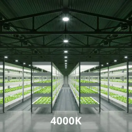 Deze LED High-bay bezit een enorme lichtopbrengst van 13000 lumen! Dit hoge aantal laat zien dat een armatuur zoals deze ook vanaf een grote hoogte nog steeds zijn werk doet. Hang je een High-bay armatuur zoals deze in een ruimte met lagere plafonds, dan is de hoeveelheid licht simpelweg te krachtig en te fel. Met als gevolg dat wanneer mensen in het licht kijken, ze direct worden verblind. Vanaf hoge plafonds (6 tot 14 meter) is dat een ander verhaal. Ook niet onbelangrijk om op te letten is de kleurtemperatuur. Deze is bij dit product: 4000K - Koel Wit. Twijfel je over de juiste kleurtemperatuur voor een grote oppervlakte? Kies dan voor koel wit (4000K). Deze lichtkleur heeft een natuurlijke tint en houdt werknemers in productie-omgevingen alert.