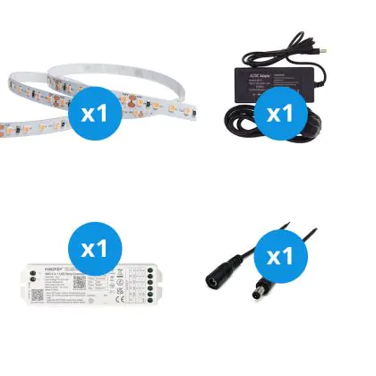 Het grote voordeel van deze complete set is dat je alle accessoires hebt die je nodig hebt om de beste lichtaccenten voor je huis of bedrijfspand te creëren. Je hoeft niet op zoek te gaan naar de juiste apparatuur; je hoeft alleen maar alle elementen met elkaar te verbinden. Daarna steek je de stekker in het stopcontact in je huis. Je kunt hier alles over lezen in onze installatieblog. Deze set bevat een: