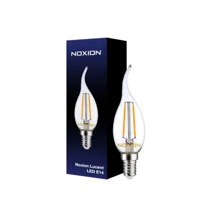 Beschrijving Noxion Lucent LED E14 gebogen punt Kaars Filament Helder 2.5W 250lm - 827 Zeer Warm Wit | Vervangt 25W