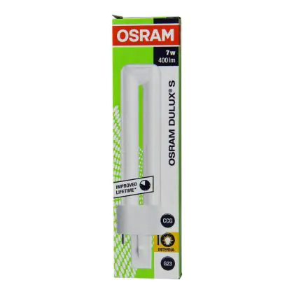 De Osram Dulux S is een korte en compacte lamp met steeklampvoet en enkelvoudig-gedraaide buizen. Ze hebben een G23-basis/voet met twee insteekvoetjes en twee-pins plug-in.