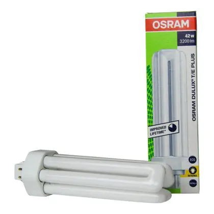 De Osram DULUX T/E 42W/827 PLUS GX24q-4 Lumilux Interna lampen hebben een GX24q-4 lampvoet en zijn 17 cm lang. Houdt u rekening met uw huidge wattage. De lengte is in verhouding met het wattage. Zodra het wattage verandert, verandert ook de lengte.Met een levensduur van 13000 gaat de Osram DULUX T/E 42W/827 PLUS GX24q-4 Lumilux Interna erg lang mee en is vervanging minder vaak nodig. Bovendien heeft de Osram DULUX T/E 42W/827 PLUS GX24q-4 Lumilux Interna energielabel A, en is daardoor milieuvriendelijk.