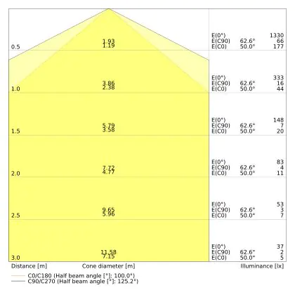 De kleurcode is een combinatie van de kleurweergave (CRI) en lichtkleur (Kelvin). Het eerste getal is de kleurweergave (1 = zeer slechte kleurweergave, 9 = maximale kleurechtheid). Het tweede en derde cijfer betreft de lichtkleur. Een lamp met kleurcode 830 heeft bijvoorbeeld een goede kleurweergave en straalt een warm wit licht uit (3000K), waar een lamp met de kleurcode 940 een uitstekende CRI heeft en een koel wit licht (4000K) uitstraalt. |