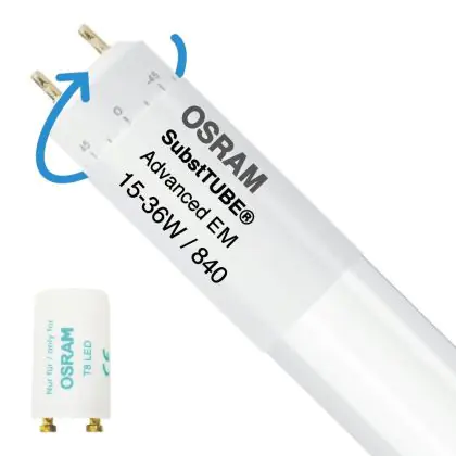 Je hebt een LED starter nodig wanneer de TL verlichting in je huidige armatuur ook een starter bevat. In dat geval gaat het om een armatuur met een conventioneel voorschakelapparaat (EM). Een LED starter vervangt je huidige starter en zorgt ervoor dat een LED TL Buis werkt.