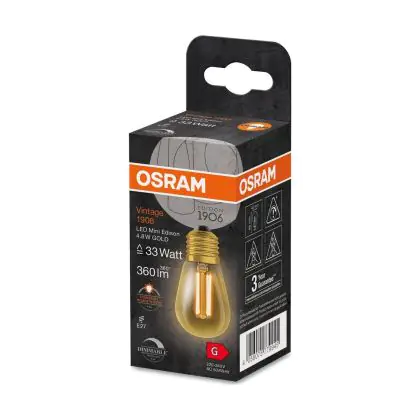Beschrijving Osram Vintage 1906 LED E27 Edison Filament Goud 4.8W 360lm - 822 Zeer Warm Wit | Dimbaar - Vervangt 40W