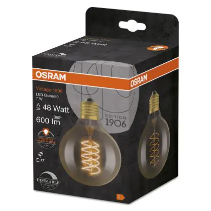 Beschrijving Osram Vintage 1906 LED E27 Globe Filament Gold 80mm 7W 600lm - 822 Extra Warm White | Dimmable
