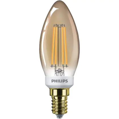 Beschrijving Philips Classic LED Kaars E14 Filament Goud 5W 350lm - 822 Zeer Warm Wit | Dimbaar - Vervangt 40W