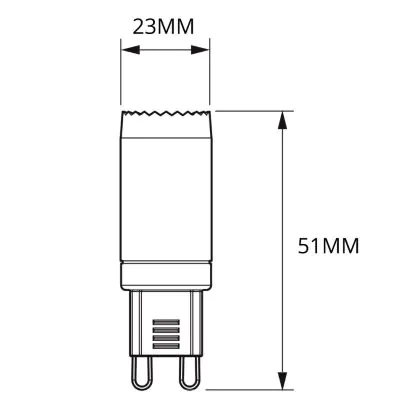 De lampvoet (fitting) is het gedeelte van de lamp dat in het armatuur bevestigd wordt. Vervang jouw lamp altijd door een lamp met dezelfde lampvoet. Het getal achter de letter(s) geeft informatie over de fitting weer. E27 geeft bijvoorbeeld aan dat de schroeffitting een doorsnede van 27mm heeft. Bij GU10 is de afstand tussen de twee pinnetjes 10mm.                                             | Lampvoet (fitting) | G9 |