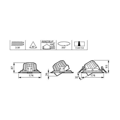 De zaagmaat van een armatuur wijkt af van de afmetingen en betreft specifiek de grootte van het gat in het plafond, dat nodig is om de lichtbron stevig vast te zetten bij installatie.                                             | Zaagmaat (mm) | 154 |