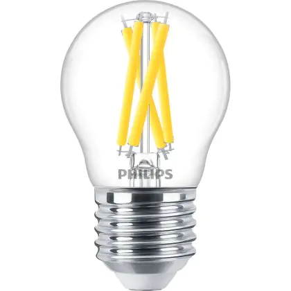 Naast de kleurtemperatuur speelt het uiterlijk van de lamp een belangrijke rol. Ga je voor mat glas of liever helder/gekleurd glas, waardoor je het LED filament (de oranje kooldraad) goed kunt zien? Heb je ook al nagedacht over de vorm en grootte? Deze E27 lamp heeft als vorm: Kogel. Ten slotte heb je bij ons een zeer ruime keus aan dimbare E27 LED lampen. Hierbij heb je een LED dimmer nodig. Wil je extra informatie over E27 LED? Lees dan onze blog: Hoe vind ik de juiste E27 lamp?