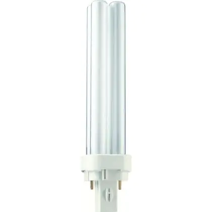 De Philips PL-C Xtra 2P lampen zijn zeer energiezuinige compacte fluorescentielampen. Door de G24d-2 lampvoet, is de lamp eenvoudig te integreren in armaturen. Let er hierbij wel op het wattage. U kunt namelijk niet wisselen van wattage doordat de lengte van de lamp zal veranderen en tevens heeft u een ander voorschakelapparaat nodig. De lamp is met energielabel B is geclassificeerd. De lampen hebben een zeer lange levensduur, namelijk 16000 branduren!