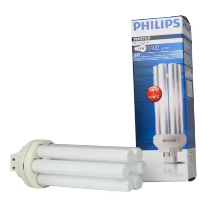 De Philips PL-T TOP 4P lampen onderscheiden zich doordat zij ontworpen zijn voor gebruik in koude of warme ruimtes. Elke compacte fluorescentielamp reeks heeft een basistype GX24q-3 lampvoet met 4 pinnen. De lampen hebben een afmeting van 14 cm. U kunt niet afwijken van het wattage dat u nu in gebruikt heeft. Een ander wattage heeft een andere vsa nodig en heeft een andere lengte. De lamp is met energielabel B is geclassificeerd. De lampen hebben een zeer lange levensduur, namelijk 13000 branduren!