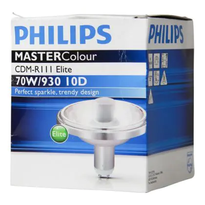 De Philips CDM-R Elite zijn compacte gasontladingslampen en zijn voorzien van een UV filter waardoor verkleuring van de verlichte objecten sterk wordt verminderd. De Elite versie heeft een grote lichtopbrengst (meer lumen) dan de normale CDM-R111 lampen en hebben hetzelfde energieverbruik. De Philips CDM-R111 Elite 70W 930 GX8.5 10D (MASTERColour) is uitgerust met een handige lampvoet (GX8.5), hierdoor kunt u de lamp op een gemakkelijke wijze in uw armatuur plaatsen.