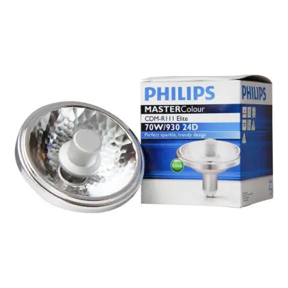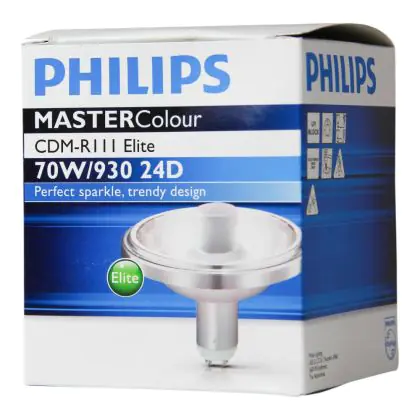 De Philips CDM-R Elite zijn compacte gasontladingslampen. De lampen zijn voorzien van een UV filter waardoor verkleuring van de verlichte objecten sterk wordt verminderd. De Elite versie heeft een grotere lichtopbrengst (meer lumen) dan de normale CDM-R111 lampen en hebben hetzelfde energieverbruik. De Philips CDM-R111 Elite 70W 930 GX8.5 24D (MASTERColour) is uitgerust met een handige lampvoet (de GX8.5), hierdoor kunt u de lamp op een gemakkelijke wijze in uw armatuur plaatsen.