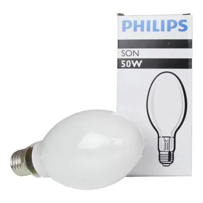 De Philips SON is een diffuse hogedruk natriumlamp en is verkrijgbaar met en zonder interne ontsteker. Philips SON 50W 220 E27 heeft een (E40) en heeft een stabiele kleur gedurende de levensduur.