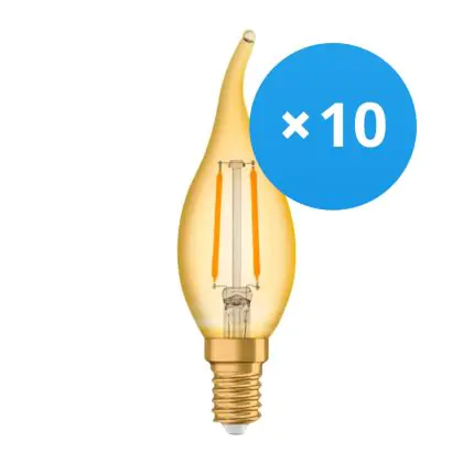 Beschrijving Voordeelpak 10x Ledvance Vintage 1906 LED E14 Kaars Goud 1.5W 120lm - 824 Zeer Warm Wit | Vervangt 15W