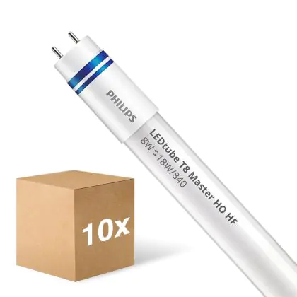 Beschrijving Voordeelpak 10x Philips LED Buis T8 MASTER (HF) High Output 8W 1050lm - 840 Koel Wit | 60cm - Vervangt 18W